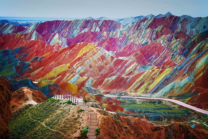 Цветные горы Данься в Китае из красного песчаника, похожие на декорации к фильму о марсианах, башни и утесы - созданные природой.