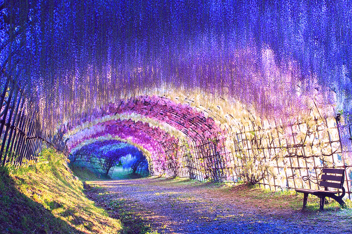 Поля тюльпанов и «водопады» цветущей глицинии,