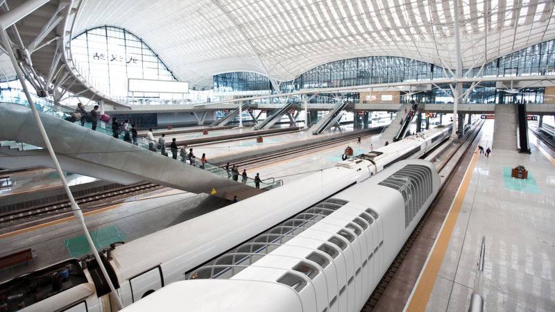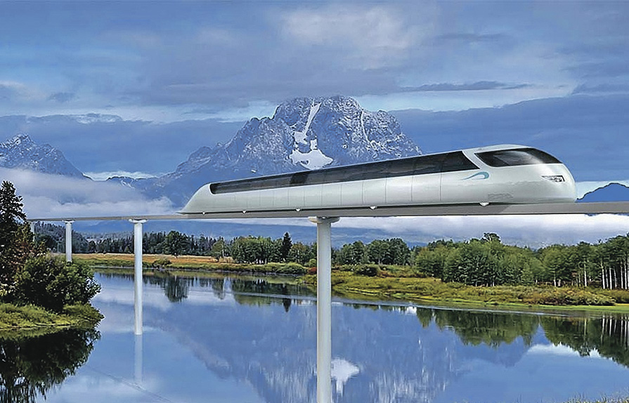Огромные колонны монорельса, поднимающие желоба для поезда-пули в поднебесье.